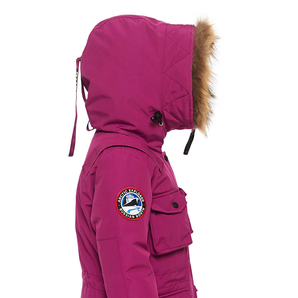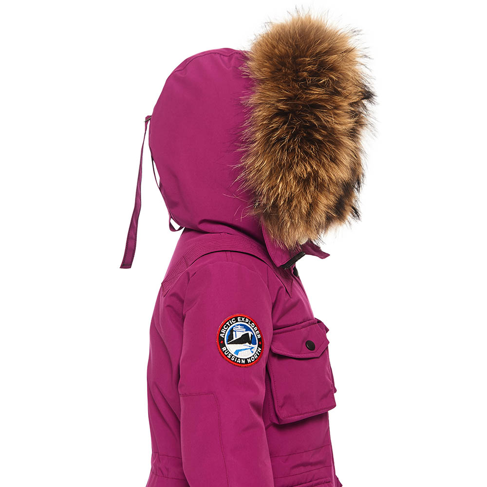 - Фирменный шеврон Arctic Explorer Russian North на рукаве, нашивка Russian North на хлястике капюшона