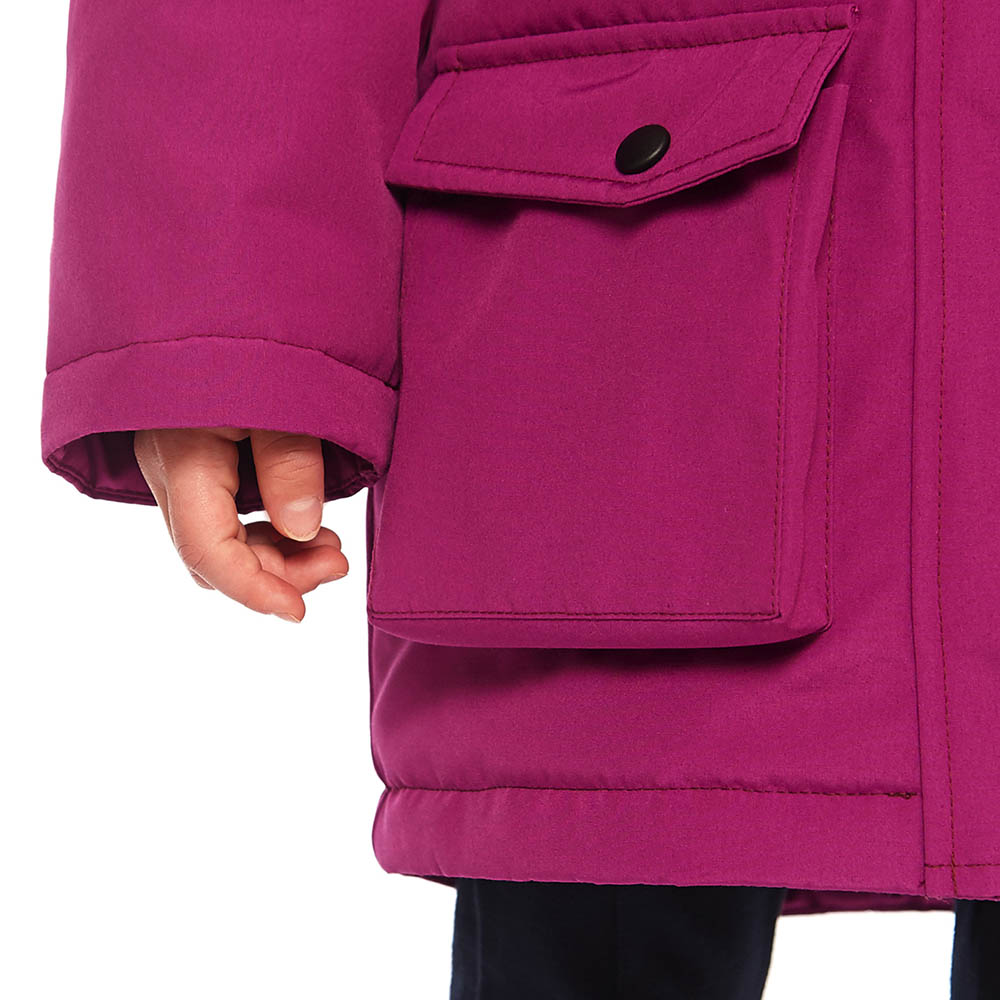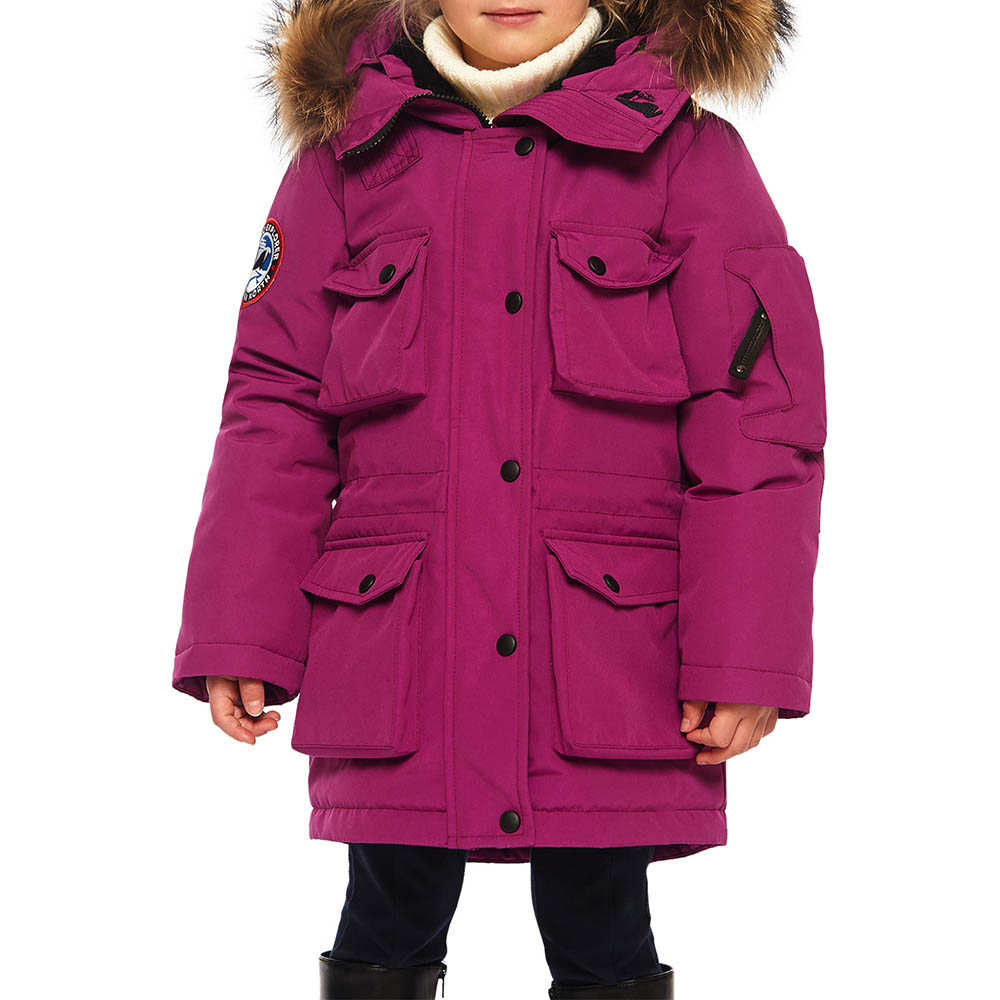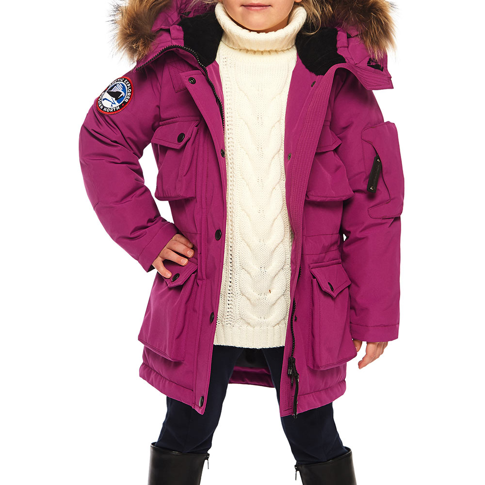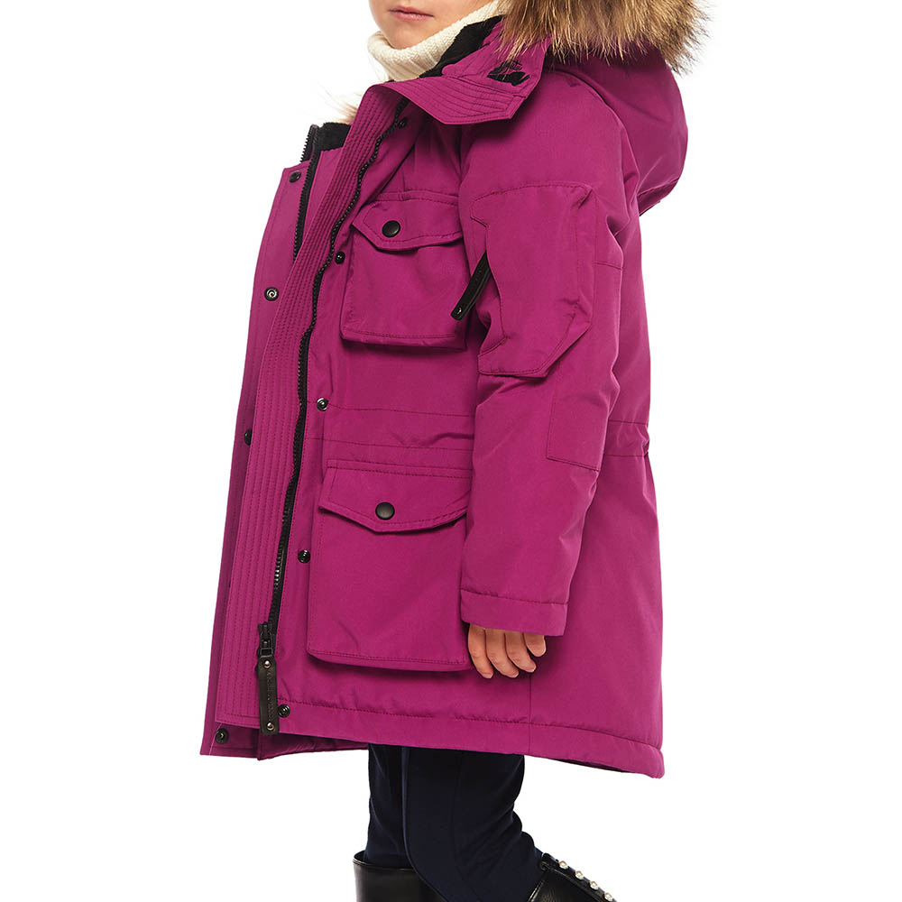 Это детская версия женской парки UMI, такая же качественная и теплая, утеплитель из гусиного пуха; утепленные внешние карманы; накладной карман на рукаве; внутренние теплые манжеты; капюшон-труба с опушкой из натурального меха енота (отстегивается); погон на одном плече – реплика на полярные погоны. А также еще немного о деталях: