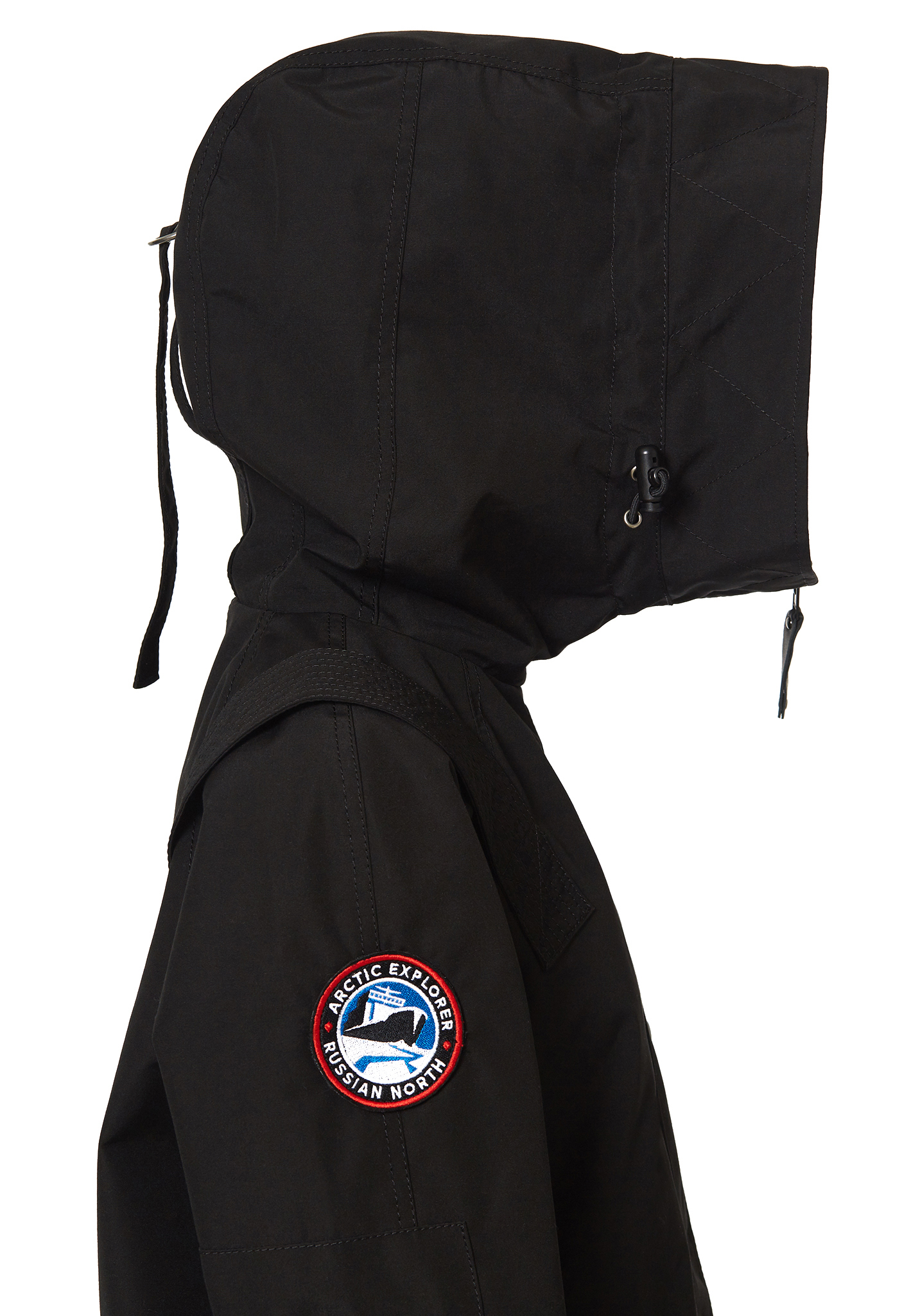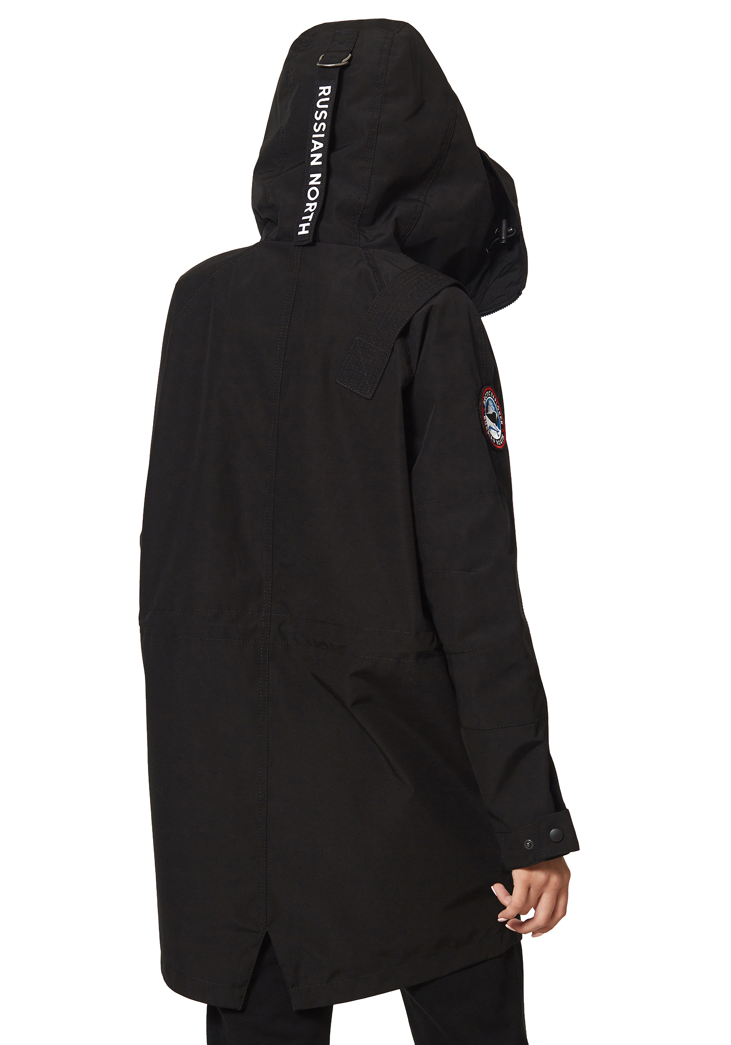 - Фирменные детали — кожаные пуллеры, съемный шеврон Arctic Explorer, хлястик Russian North подчеркивают стиль и узнаваемость бренда.