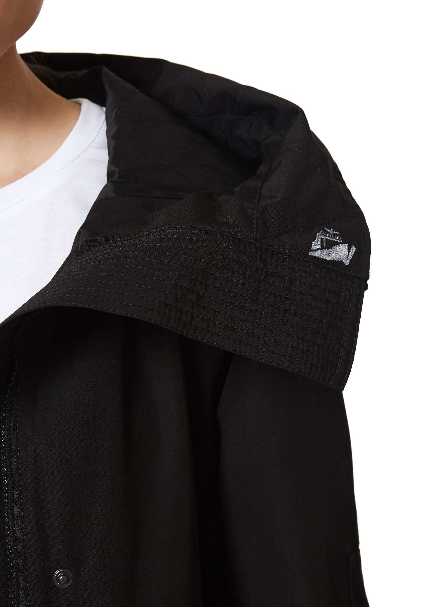 - Функциональный капюшон формы «труба» — оснащен двумя утяжками, позволяет точно отрегулировать посадку под индивидуальные предпочтения.